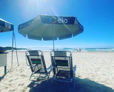 🌴 Aluguel de cadeiras e guarda-sóis para relaxar na areia sem se preocupar com nada.